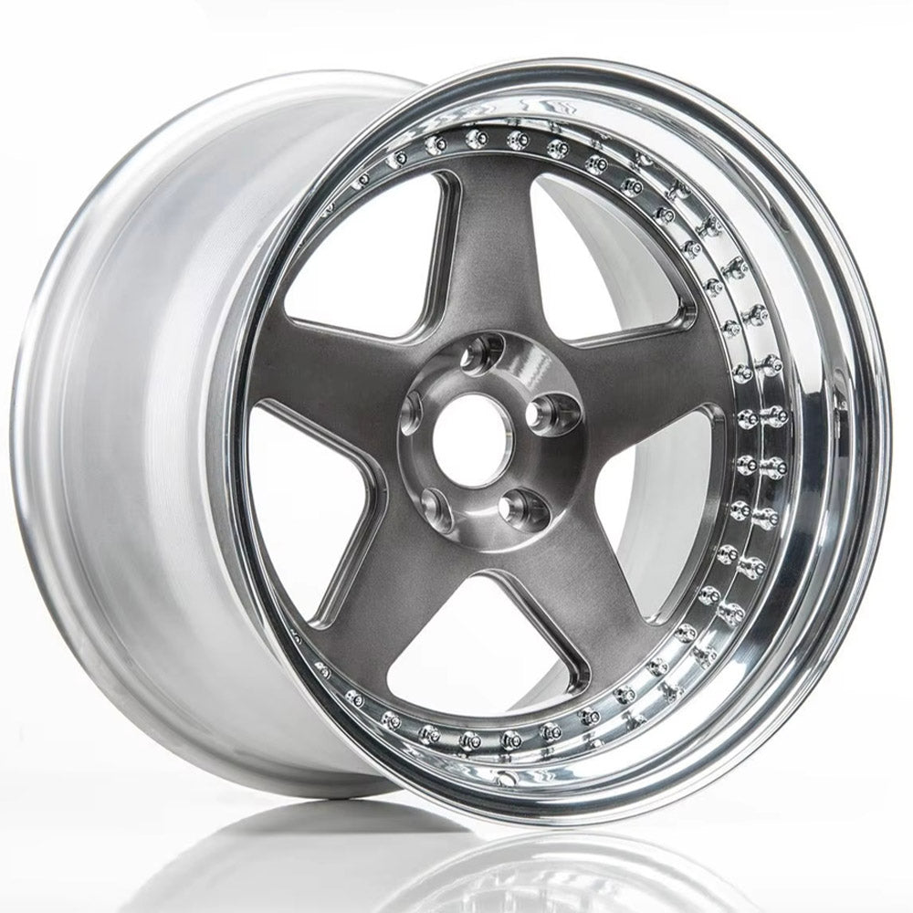 Formada por aro, centro y garganta independientes, permite la máxima personalización y ajuste de ancho y offset. Perfecta para proyectos de alto rendimiento y estética única.